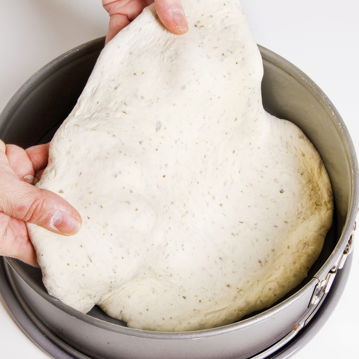 Formare una palla e lasciarla lievitare per 60 min, coperta con un canovaccio.