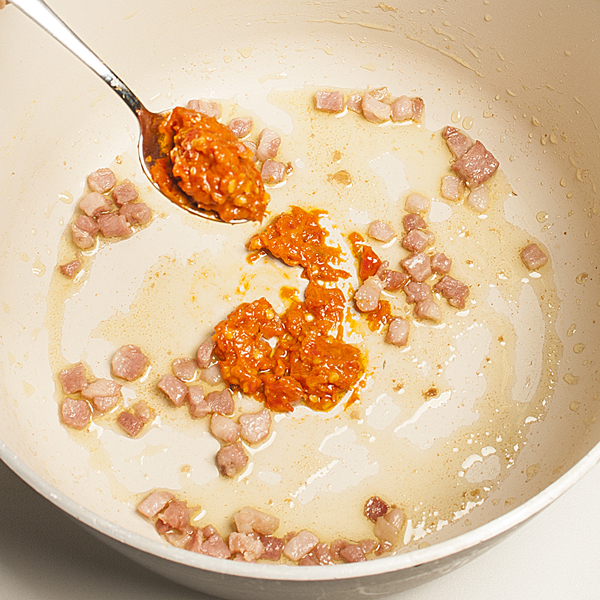 Diluire all’occorrenza con un po’ di brodo, se la crema dovesse risultare troppo densa.