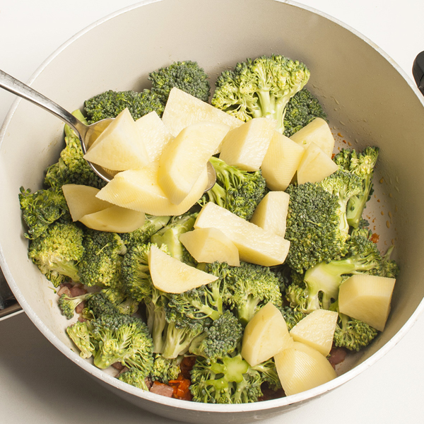 Ricoprire con il brodo e cuocere per 30 min, poi frullare il minestrone e rimetterlo in casseruola aggiungendo il formaggio e regolando di sale.