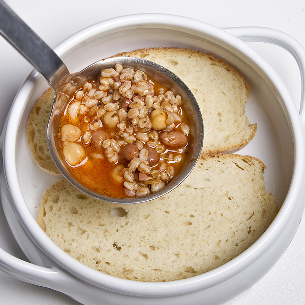 Dalla tradizione toscana, una zuppa ricca di sapore:verdure e cereali, uniti al tocco del rosmarino, per un piatto perfetto per l'inverno.